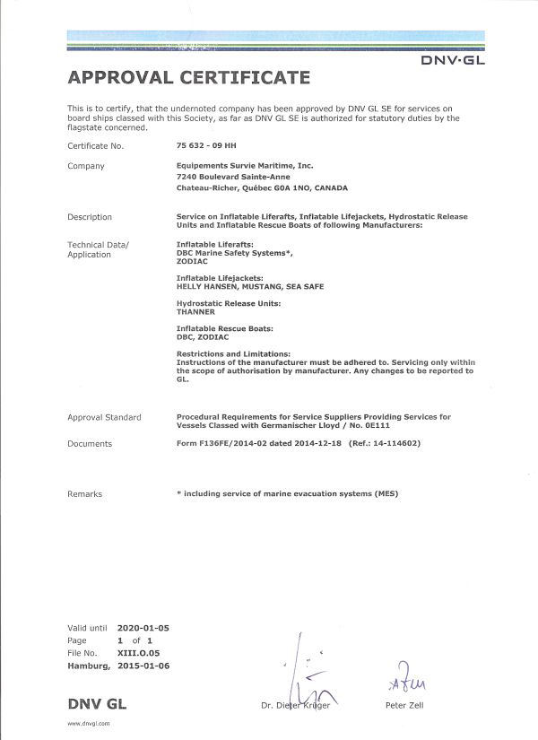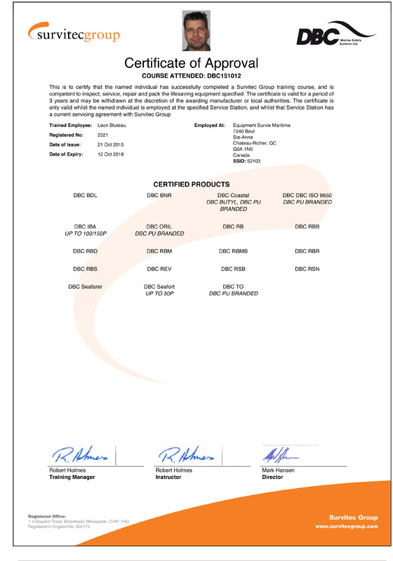 ESM professionals have the certifications for the inspection of your equipment. Whether it is for life rafts, extinguishers or breathable air cylinders of all kinds, ESM is there to insure quality control.
